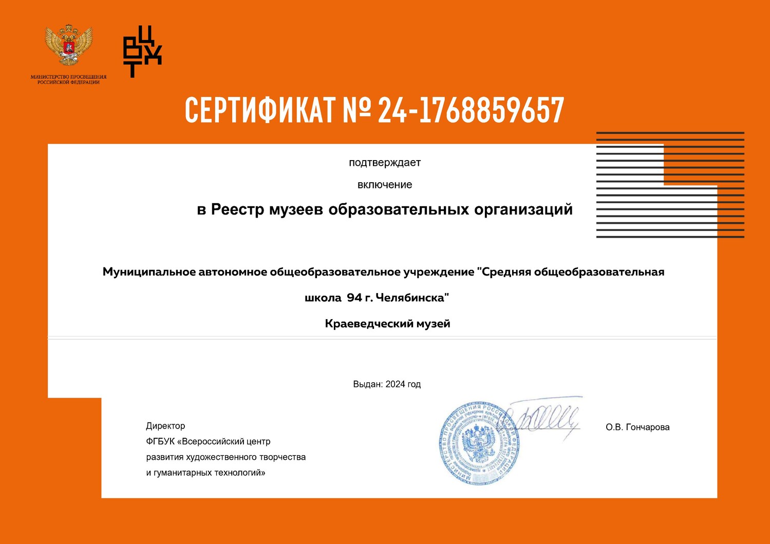 Музей был открыт на базе филиала школы № 94 в пос. Аэропорт (ранее школа № 139) в 2002 году к 40-летнему юбилею школы. Все экспонаты музея изготовлены силами учеников, учителей» с помощью родителей или предоставлены жителями нашего поселка, бабушками и дедушками.