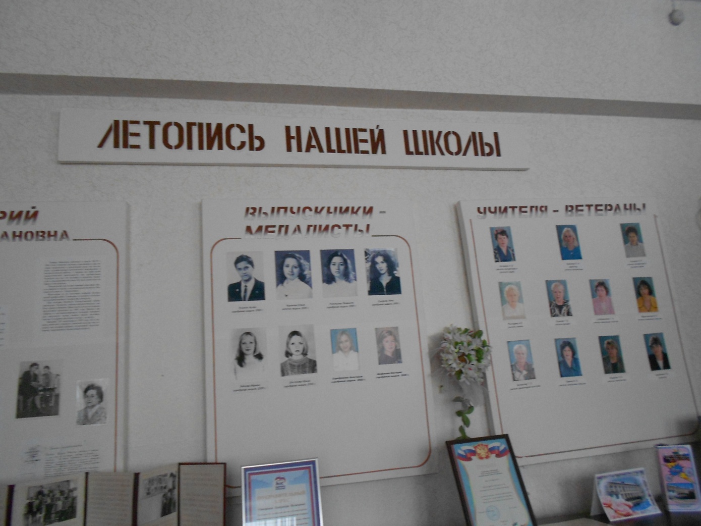 На втором стенде размещены фотографии выпускников нашей школы - медалистов. Это гордость школы. Первым медалистом был Русаков Артём, выпуск 1990г. Чудинова Елена, Поливцева Людмила, 1995г. Суворова Анна, Шестакова Ирина и др.