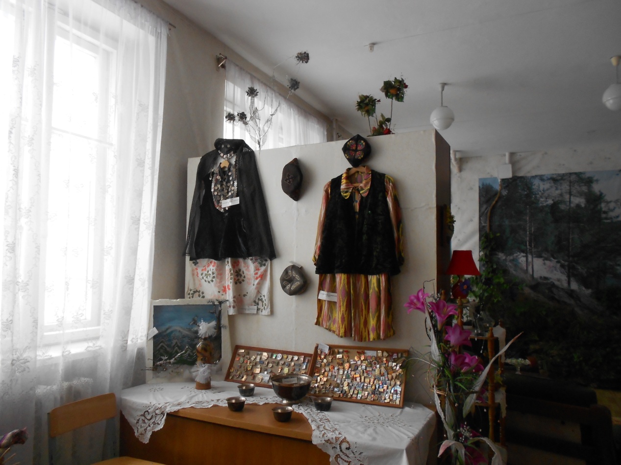 Наш посёлок многонационален, и экспонаты музея отражают это. Здесь находится русская рубаха, расшитая по вороту; балалайка; русский крестьянский костюм, выполненный руками выпускницы нашей школы Часовских Алёны; плетёные лапти; кокошники; татарский повседневный наряд, который состоит из платья, плюшевой безрукавки, нагрудника, тюбетейки. Здесь также представлены элементы свадебного татарского и башкирского наряда: расшитый татарскими узорами передник и старинный башкирский головной убор (такэя) - кожаная тюбетейка, расшитая монетами.
